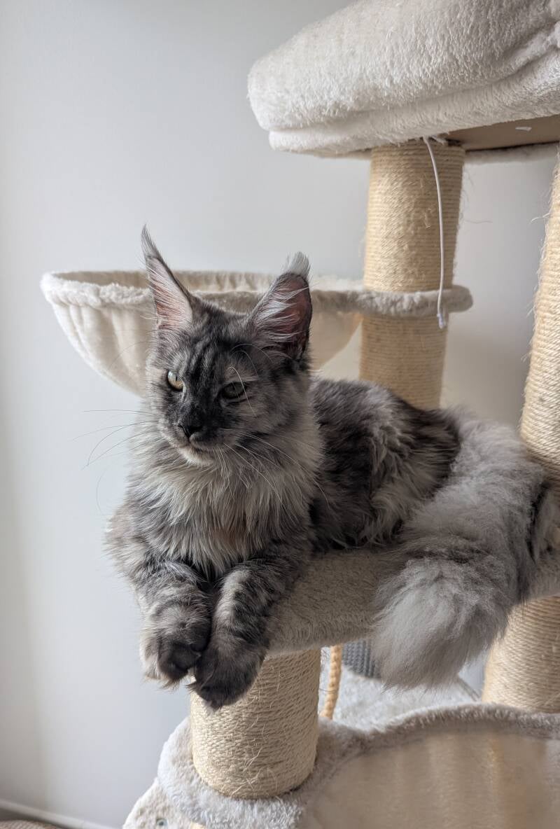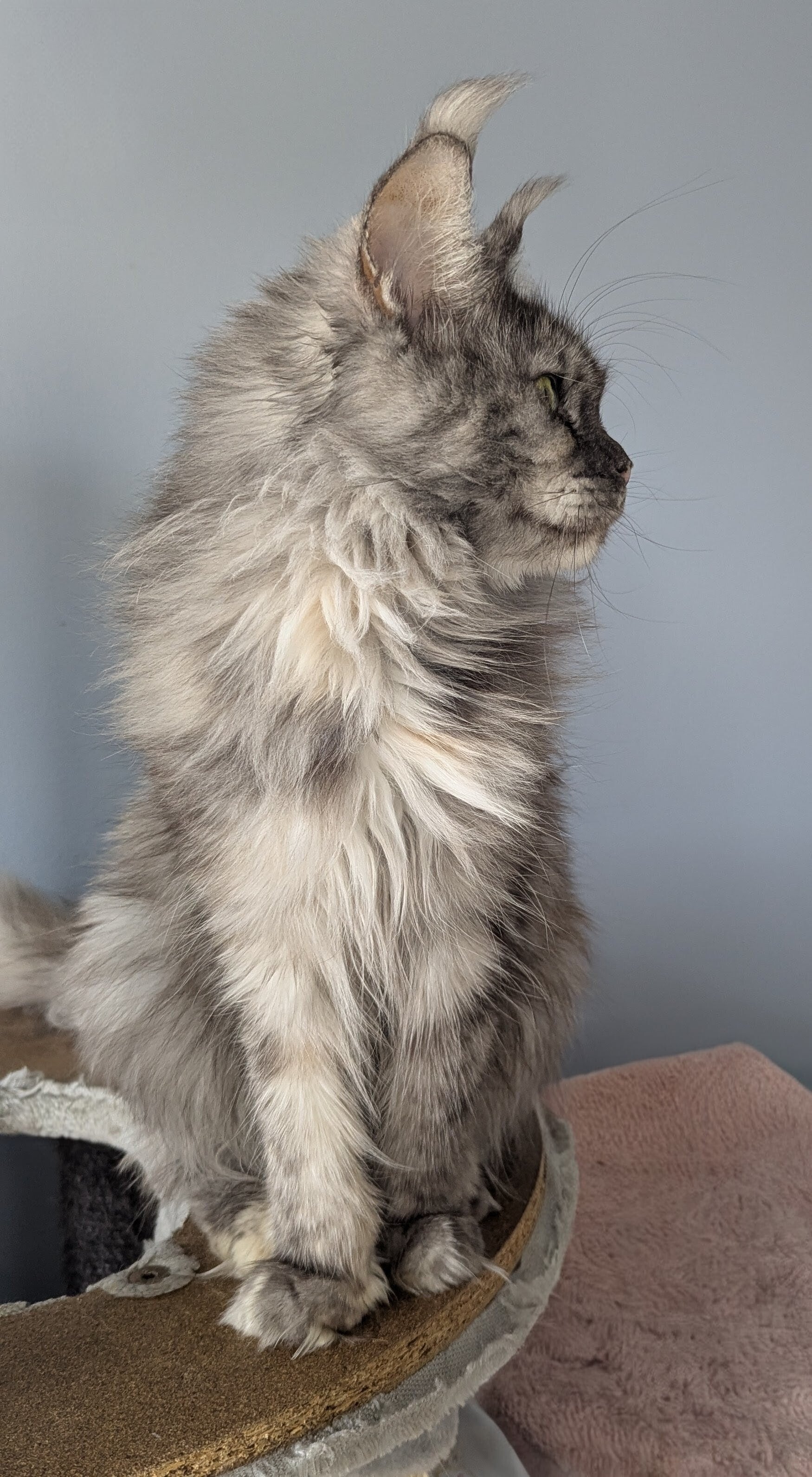 Découvrez nos Maine Coons, fiers représentants de notre élevage familial. Nous mettons un point d'honneur à respecter la race et à poursuivre une amélioration constante pour offrir des compagnons félins d'exception.